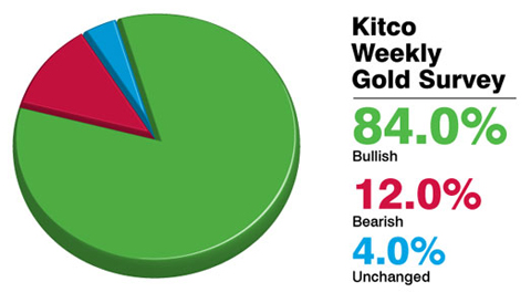 Cuộc khảo sát thường lệ của Kitco đã cho thấy, trong số 25 người tham gia, có tới 21 bỏ phiếu giá lên (chiếm 84%), trong khi ba thấy giá xuống (chiếm 12%) và chỉ một cho rằng giá vẫn đứng yên (4%).
