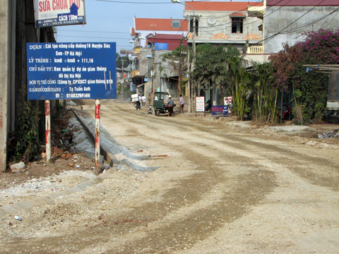 Cải tạo nâng cấp đường 16 huyện Sóc Sơn khiến giá đất tăng chóng mặt. Ảnh: Hoàng Lan.